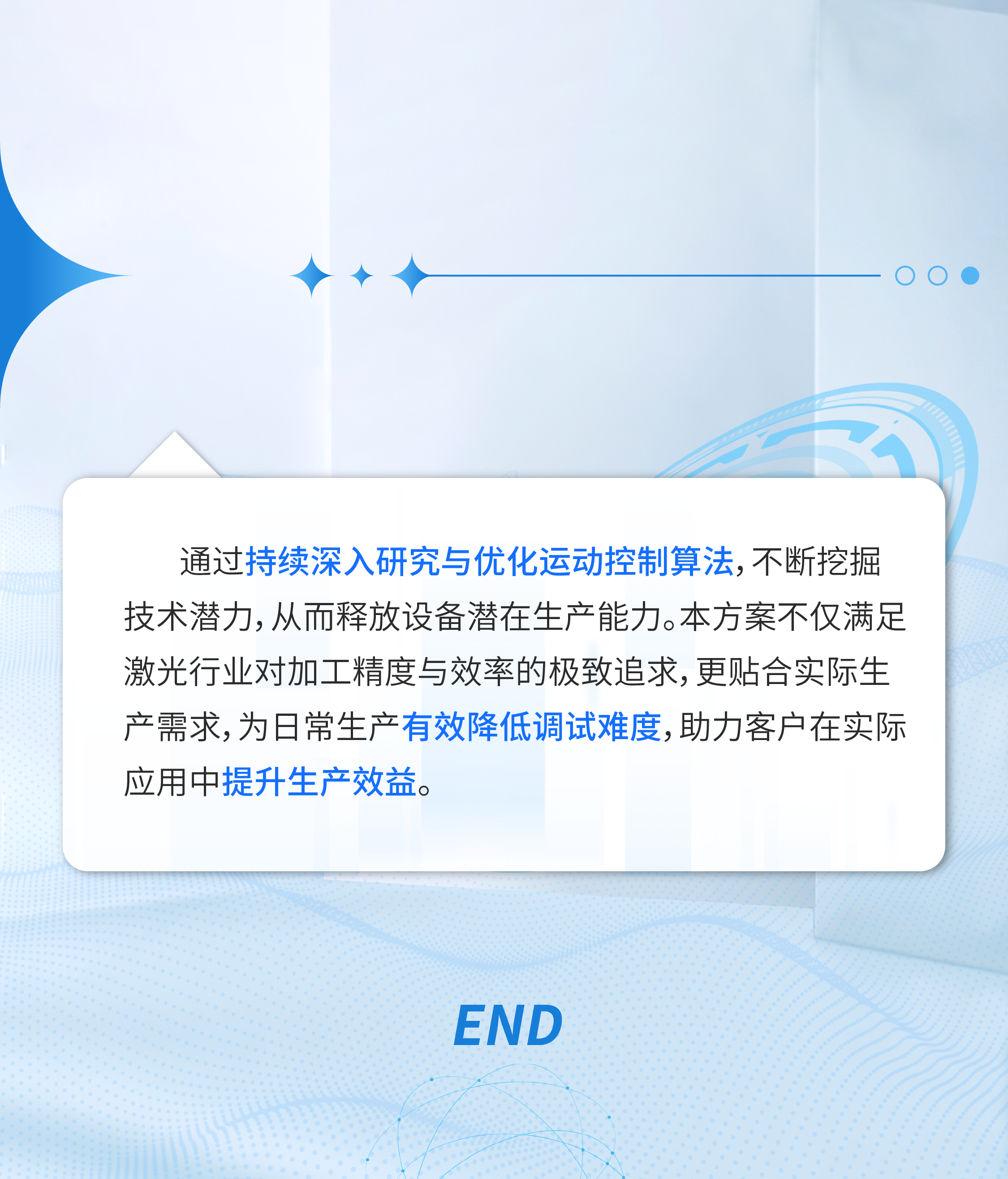 关键词:大族智控、核心算法换新升级、运动控制性能大幅提升、高性能运动控制解决方案、提升激光切割加工精度与效率、基础图形加工、小线段图形加工自适应调节、高速定位、柔性加工、全面优化运动曲线形态。