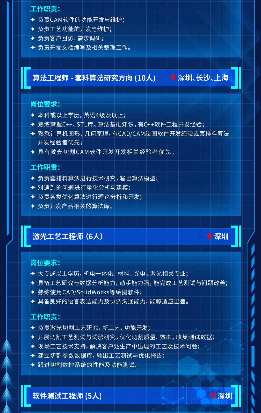关键词:招聘,族聚英才 智控未来|2026年大族智控创新人才招募计划,控制软件开发工程师,CAM软件开发工程师,算法工程师(套料算法研究方向),激光工艺工程师,软件测试工程师,技术支持工程师