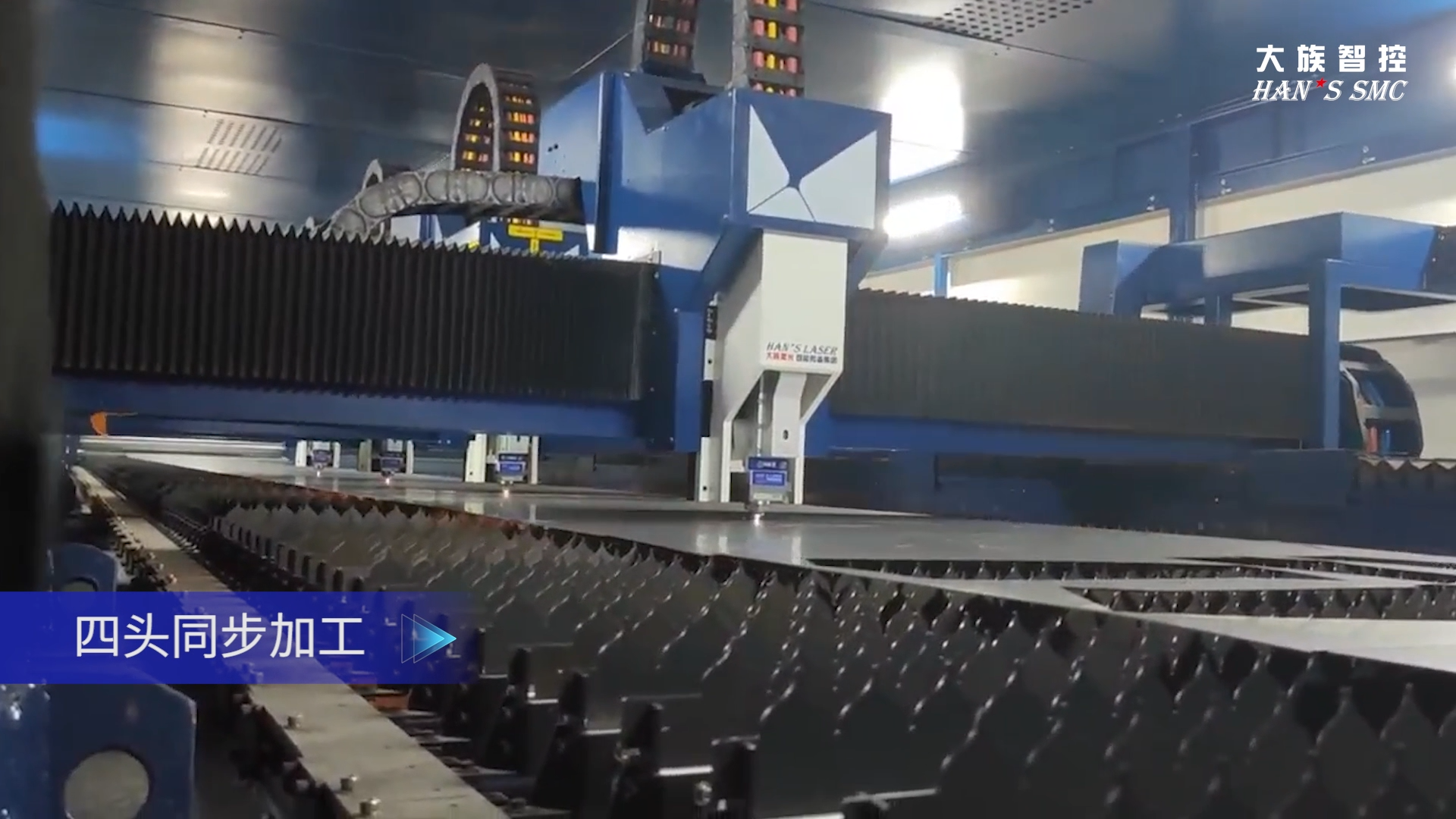 关键词:产能革新,效率倍增|大族智控激光大幅面切割多通道数控系统介绍、双头异步加工、四头同步加工、切割+打标同步加工