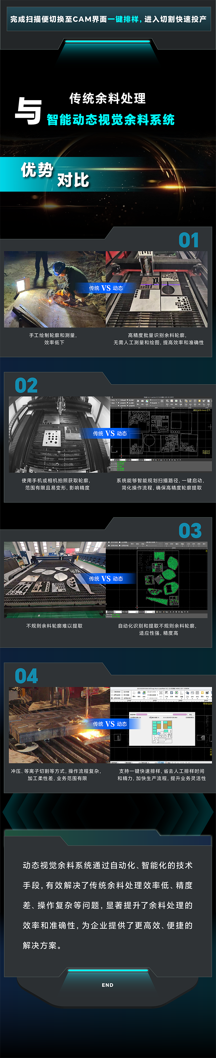 关键词:动态视觉余料系统、余料再利用、智能化套料、自动化操作、余料处理、加工报告、性能指标、高精度、一键操作、轮廓提取、材料利用率、操作流程、智能动态视觉