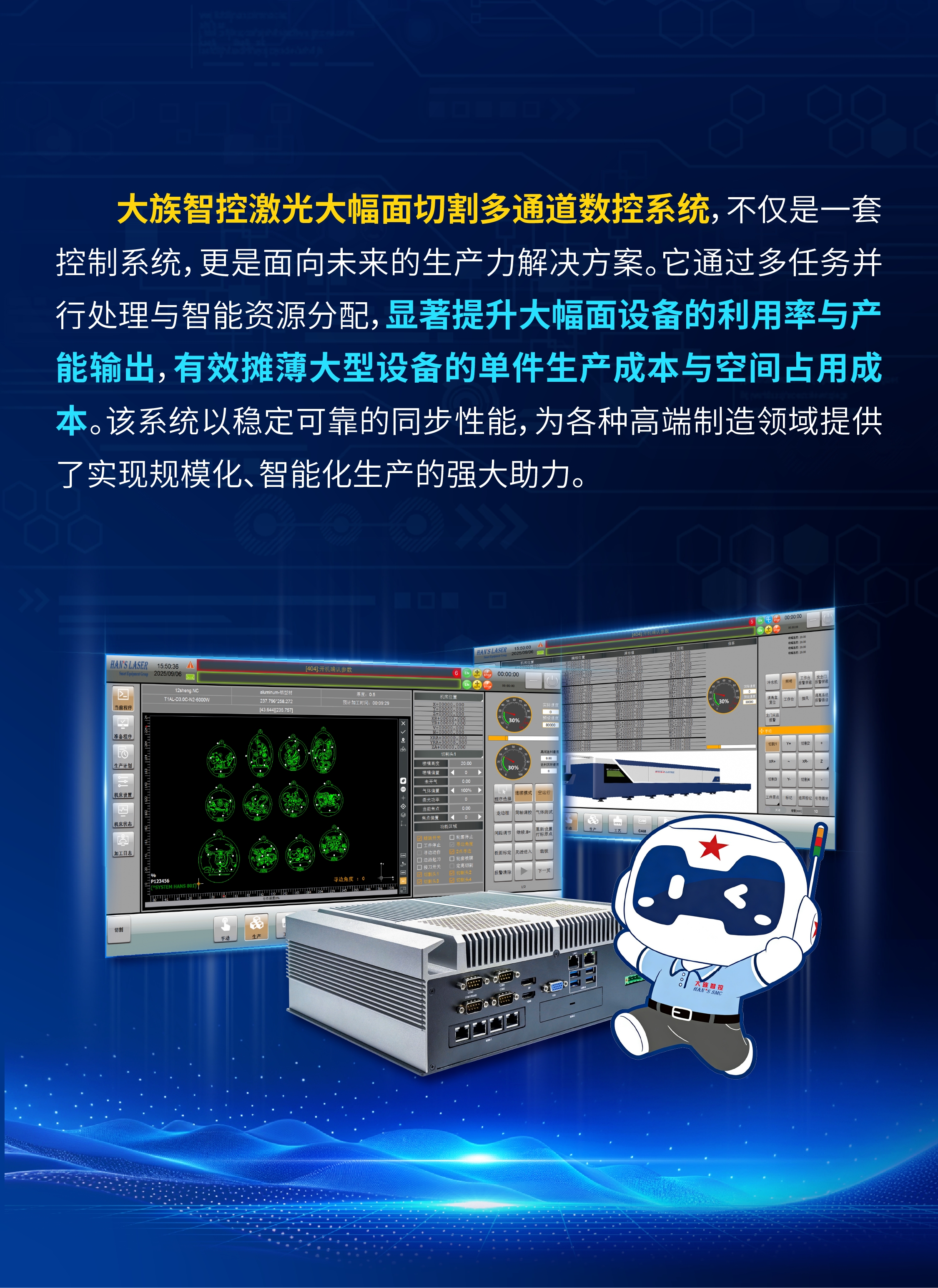 产能革新,效率倍增|大族智控激光大幅面切割多通道数控系统介绍